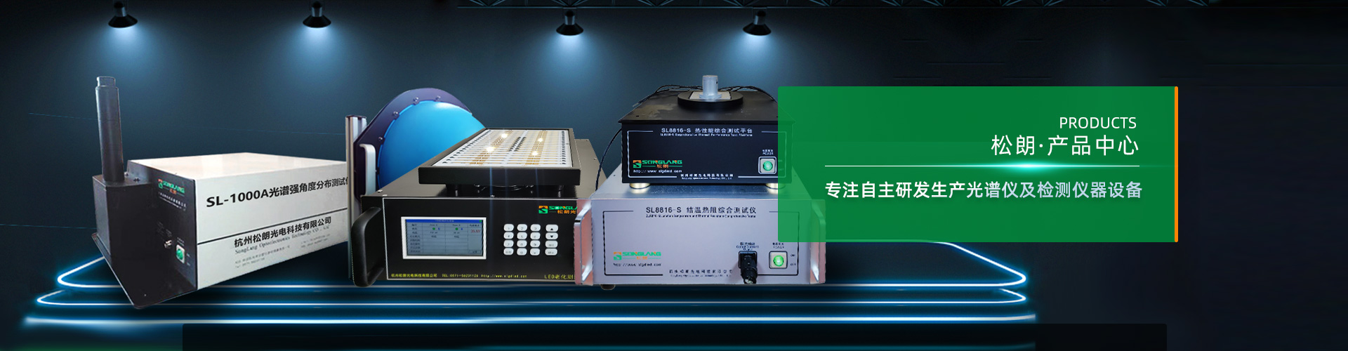杭州松朗光電主營光譜儀,積分球,照度計,功率計,標準光源,輻照度,透光率測試儀,輻射強度,靜電放電發生器,配光曲線,分布光度計,工頻磁場發生器,色彩分析儀,uv能量計,反射率測試儀,成像亮度計等儀器設備.